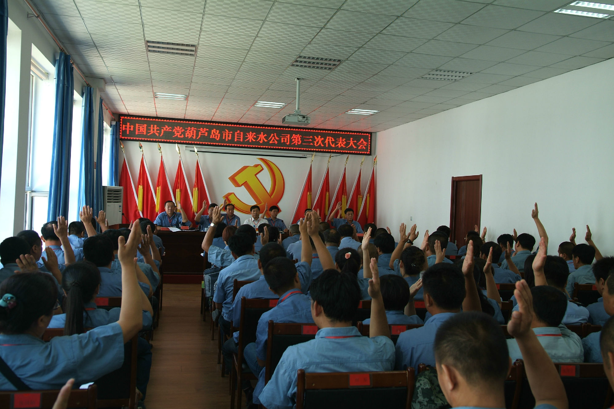 公司經(jīng)理李文生宣讀《中國共產(chǎn)黨葫蘆島市自來水公司第三次代表大會選舉辦法》,經(jīng)全體代表表決通過后,大會以無記名投票方式,差額選舉產(chǎn)生了9名公司第三屆黨委委員。在隨后召開的第三屆委員會第一次全體會議上,選舉張旭濱為公司黨委書記,李文生為副書記,并明確委員分工。張旭濱同志代表新當(dāng)選的公司第三屆黨委講話,指明今后的工作思路和前進方向。接著,徐學(xué)良常務(wù)副經(jīng)理宣讀大會決議。