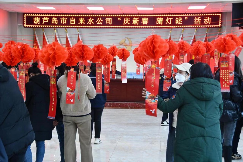 2月10日下午14時(shí),公司近百名職工齊聚大會(huì)議室,本次活動(dòng)還特別邀請(qǐng)了中機(jī)(葫蘆島)青山水務(wù)環(huán)境投資有限公司干部職工共同參與,由工會(huì)閆主席和安副主席親自帶隊(duì)?;顒?dòng)現(xiàn)場(chǎng)被精心準(zhǔn)備的紅燈籠、燈謎條等裝飾的分外喜慶,節(jié)日氛圍十足。本次活動(dòng)設(shè)150余條燈謎,內(nèi)容涵蓋成語(yǔ)、字謎、文具、植物、水產(chǎn)、樂器和鮮花等多方面內(nèi)容,集知識(shí)性與娛樂性于一體,以寓教于樂的形式傳承傳統(tǒng)文化。參賽職工暢游在百條燈謎中,有的獨(dú)自研究,有的和身邊同事共同討論,紛紛沉浸在猜謎的樂趣中,整個(gè)活動(dòng)現(xiàn)場(chǎng)一片歡聲笑語(yǔ)。