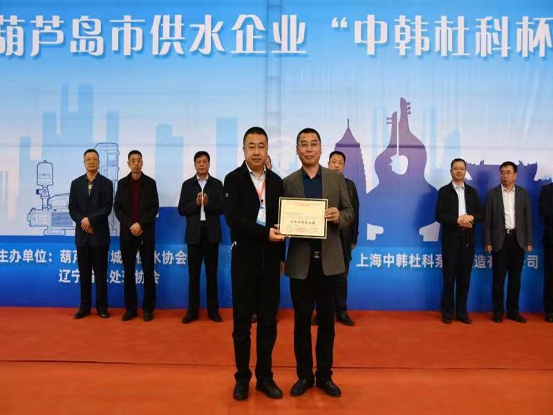 葫蘆島市城鎮(zhèn)供水協(xié)會李文生會長在閉幕會上向上海中韓杜科泵業(yè)制造有限公司對本次活動的鼎力相助、渤海船舶職業(yè)學(xué)院對本次活動提供場地和人員支持、以及各縣區(qū)水司同行及全體員工對本次活動的熱情支持表示感謝;向獲獎選手表示祝賀,向市總工會、市國資委及省水處理協(xié)會的支持表示感謝。他指出,本次活動獲獎職工的成績,將在晉職晉級、提拔任用等方面作為有效的重要的依據(jù),激勵大家愛崗敬業(yè),勤學(xué)勤練,苦練本領(lǐng),為城市供水事業(yè)多做貢獻。