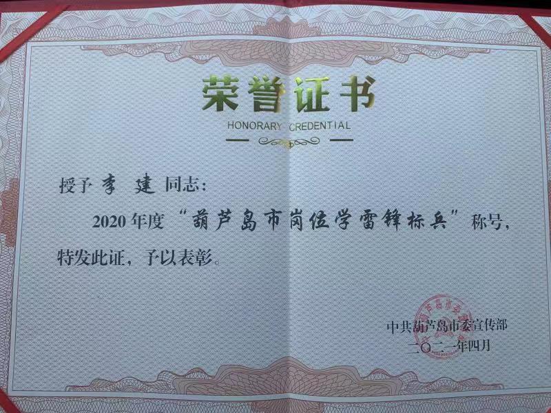 近日,市自來水公司綜合部員工李建榮獲葫蘆島市“崗位學(xué)雷鋒標(biāo)兵”榮譽(yù)稱號。
