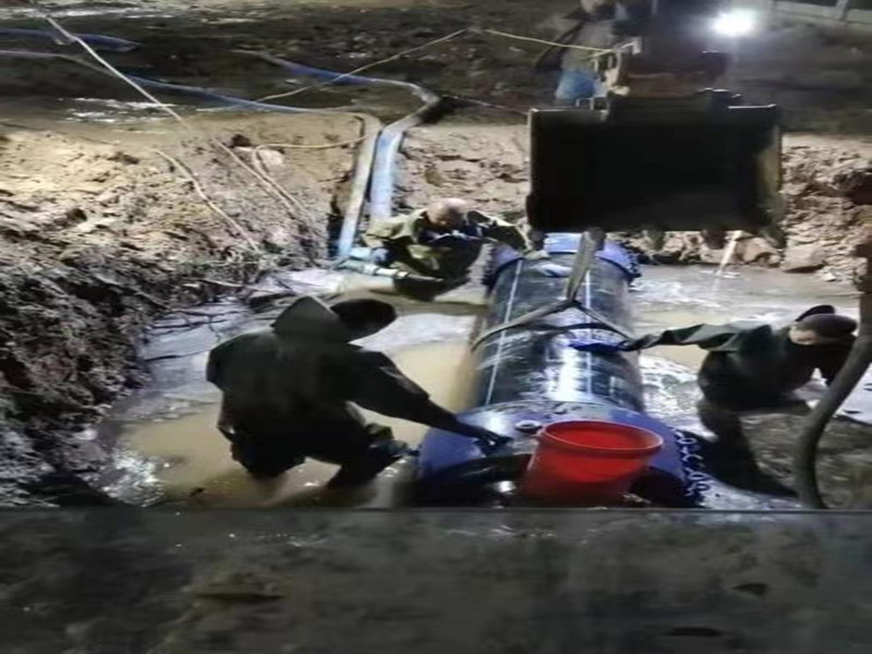 當(dāng)晚,搶修人員各司其職,有序展開搶修工作。先調(diào)用抽水泵抽水,解決人、車出行問題,再用挖機(jī)對(duì)漏點(diǎn)位置進(jìn)行開挖,再用卡具將管線連接。由于此處路段為填海路段,地面水飽和,加之管道內(nèi)余水不斷冒出,搶修難度很大。維修人員們?cè)邶R腰深積水的深坑中帶水作業(yè),經(jīng)過7個(gè)多小時(shí)的緊張搶修,19日凌晨零時(shí)13分,爆裂管線順利修復(fù),零點(diǎn)30分恢復(fù)供水。