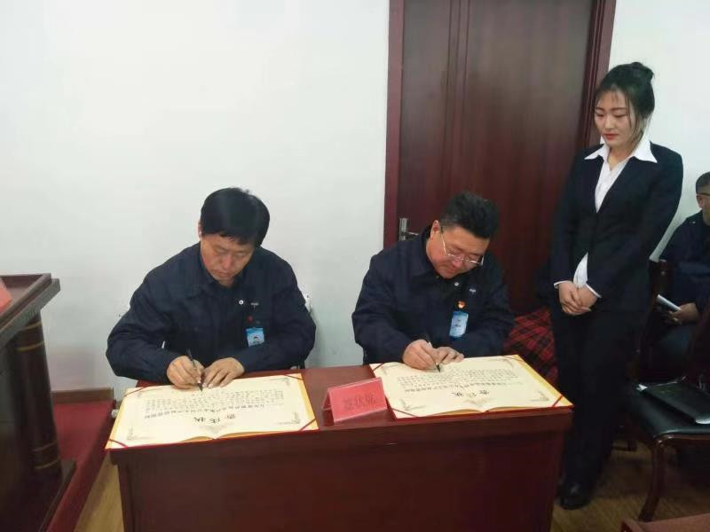 會上,公司經(jīng)理李文生與各分管經(jīng)理及部門負(fù)責(zé)人分別簽訂2019年度經(jīng)營指標(biāo)責(zé)任狀。