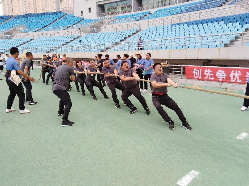 市自來水公司工會層層選拔、精心挑選,組成了一支由工會副主席臧威帶隊的15人參賽團(tuán)隊。隊員們統(tǒng)一著裝,精神振奮,熱情高漲,比賽過程中,無論是場上還是場下,氣氛都異常激烈。參賽隊員們手握緊繩子,身體向后傾,隨著裁判員的一聲哨響,隊員們努力拼搏,尤其是在勝負(fù)難分的時刻,大家毫不退卻,咬緊牙關(guān),堅持到底。賽場上的選手們堅強勇敢的作為、團(tuán)結(jié)協(xié)作的精神深深的感染了在場的每個人,連中場休息的隊伍也在為賽中的選手們加油助威,富有節(jié)奏的吶喊聲、加油聲,充斥在比賽場地上空。經(jīng)過循環(huán)賽、淘汰賽的激烈角逐,公司工會代表隊在小組比賽中取得了第一名的優(yōu)異成績。
