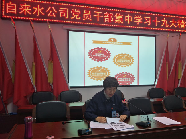 11月2日上午,市自來水公司組織黨員干部在大會議室集中學(xué)習(xí)十九大精神。會議由公司經(jīng)理、黨委副書記李文生主持,公司領(lǐng)導(dǎo)班子擴(kuò)大成員、中層正副職干部共30余人參加了學(xué)習(xí)會議。