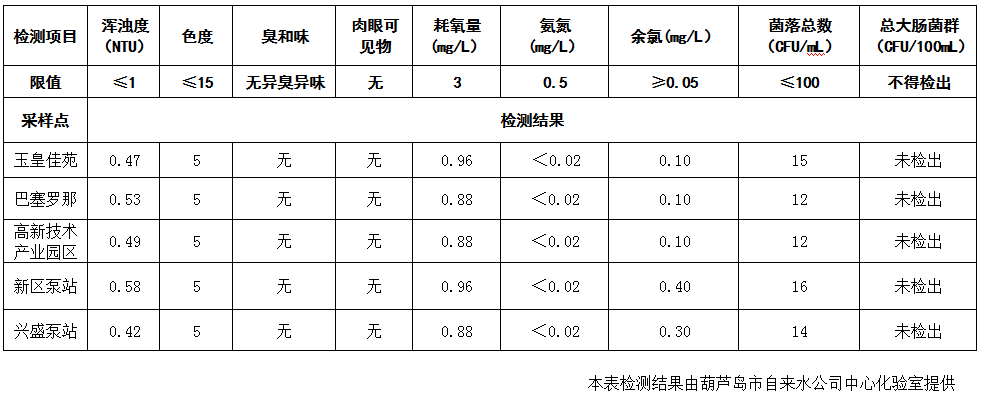 2017年7月5日葫蘆島市城市供水管網(wǎng)水質(zhì)信息